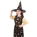 Halloweenský kostým pro malé čarodějnice! Kostým černo-zlaté barvy ve velikosti M je určen pro holčičky ve věkovém rozmezí 6-8 let (117-128 cm). Šaty jsou dekorovány zlatými halloweenskými motivy. Součástí kostýmu je perfektně sladěný čarodějnický klobouk. S tímto úchvatným kostýmem se zaručeně staneš hvězdou karnevalu i Halloweenu! Nejen letos je potřeba myslet EKO-nomicky i EKO-logicky! EKO-balení je vhodné zejména pro e-shopy kde zákazník nakupuje dle fotografie a není třeba velkého balení s věšákem. EKO-logicky – na balení bylo použito méně plastu a dalších materiálů. Jedná se o malý transparentní obal s fotografií. EKO-nomicky –EKO-obal zabere jen polovinu místa – šetřete skladová místa s námi!