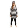 Pruhovaný karnevalový kostým vězeňkyně v typických bílo-černých barvách ve velikosti S je určen pro děvčata ve věku 4-6 let (105-116 cm). Kostým obsahuje dlouhé triko a čepici s číslem vězně. Nejen letos je potřeba myslet EKO-nomicky i EKO-logicky! EKO-balení je vhodné zejména pro e-shopy kde zákazník nakupuje dle fotografie a není třeba velkého balení s věšákem. EKO-logicky – na balení bylo použito méně plastu a dalších materiálů. Jedná se o malý transparentní obal s fotografií. EKO-nomicky –EKO-obal zabere jen polovinu místa – šetřete skladová místa s námi!