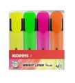 KORES BRIGHT LINER PLUS sada 4 barvy (žlutá, růžová, oranžová, zelená)