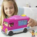 Při stavbě MEGA Barbie® Karavanu snů mohou děti popustit uzdu své fantazii. Tento postavitelný karavan snů obsahuje střešní postel a televizi, navíc zadní a boční dveře, které se otevírají pro snadný přístup do detailně propracovaného interiéru s kompletn