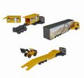 Kovový nákladní automobil Volvo – Transportér s přívěsem a kolovým nakladačem, se 2 stavebními kontejnery nebo kamion s odpojitelným přívěsem. Díky robustnímu kovovému podvozku a vysoce kvalitnímu provedení je každé vozidlo vyrobeno tak, aby vydrželo. Délka 20 cm.