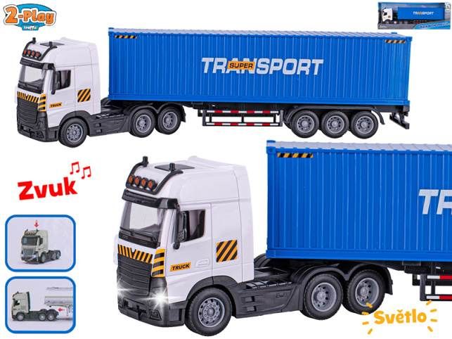 2-Play Traffic auto nákladní s přívěsem 38cm na setrvačník na baterie se světlem a zvukem