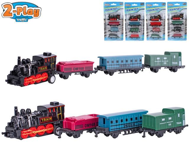 2-Play Traffic lokomotiva 7cm kov s vagóny 3ks 6-7cm zpětný chod 4druhy na kartě
