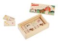 Jedna hra, dva způsoby zábavy pro malé i větší děti! S oboustranným dominem se děti nejen skvěle zabaví, ale také přirozeně rozvíjejí své schopnosti. Menší děti si užijí skládání pomocí veselých obrázků zvířátek z farmy, zatímco větší si zahrají klasické domino s puntíky a nenásilně si procvičí počítání i logické uvažování.Domino podporuje logické myšlení i jemnou motoriku a nabízí skvělou možnost ke společné hře dětí s rodiči, prarodiči nebo sourozenci. Příjemné pastelové a zemité odstíny barev spolu s kvalitním přírodním dřevem dělají z této hračky krásný doplněk každého pokojíčku. Uloženo v praktickém dřevěném boxu s víčkem.Hlavní vlastnosti• oboustranné provedení• rozvíjí logické myšlení a schopnost soustředění• podporuje jemnou motoriku a koordinaci• odolné a příjemné na dotek• vhodné pro děti od 2 let