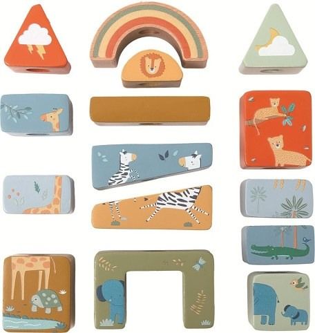 Vydejte se na dobrodružnou cestu na safari, bez zavazadel, bez pasu, zato s pořádnou dávkou fantazie! Tato originální nasazovačka přináší zábavu i rozvoj v jednom. Děti na tyče nasazují kostky s obrázky zvířátek. Potěší je žirafa s mládětem, krokodýl, zebra s malým zebřátkem i slon. Každý dílek má své místo, a jakmile je vše správně nasazeno, před dětmi se objeví celá safari rodinka.Skládání rozvíjí logické myšlení, jemnou motoriku a koordinaci ruka-oko. Děti se také naučí rozeznávat a pojmenovat zvířátka. Díky kombinaci dřevěného materiálu a přírodních zemitých odstínů se stane pěkným doplňkem dětského pokojíčku nebo herny.Hlavní vlastnosti:• tři dřevěné tyčky pro nasazování kostek• motiv Safari• rozvíjí logické myšlení• rozvíjí jemnou motoriku, koordinaci ruka-oko a představivost• kombinace přírodního dřeva a zemitých odstínů• stabilní a bezpečné zpracování• atraktivní doplněk dětského pokojíčku nebo herny• vhodné pro děti od 1 roku