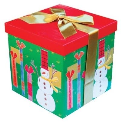 Dárková krabička skládací s mašlí vánoční M+ 17x17 -2.ZELENÁ SE SNĚHULÁKEM A ZLATOU STUHOU