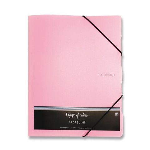 3chlopňové spisové desky s uzavírací gumičkou. Vyrobené z tuhého polypropylenu v moderních pastelových barvách, tloušťka 400 mikronů. Na dokumenty A4. Rozměr 247 x 320 x 5 mm.