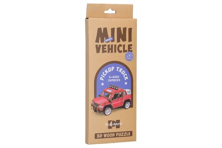 3D puzzle dřevěné - Pickup. Rozměry 13x6,2x6 cm. 26 dílků. Na zpětné natažení.