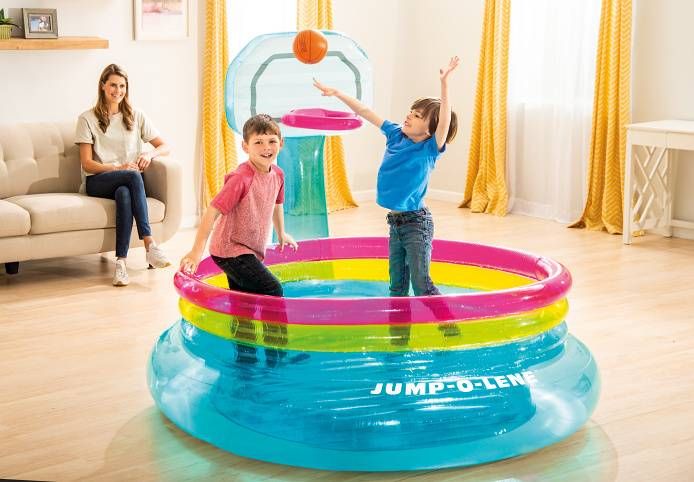 Maximální nosnost 54 kg, pro 2 děti maximálně, Rozměr: 196 x 180 x 152 cm, Obsah balení: - nafukovací basketbalový koš, balón