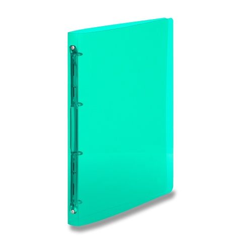 Transparentní polypropylenový 4kroužkový pořadač, kroužek o 20 mm. Hřbet 25 mm. Na dokumenty A5, až na 100 listů.