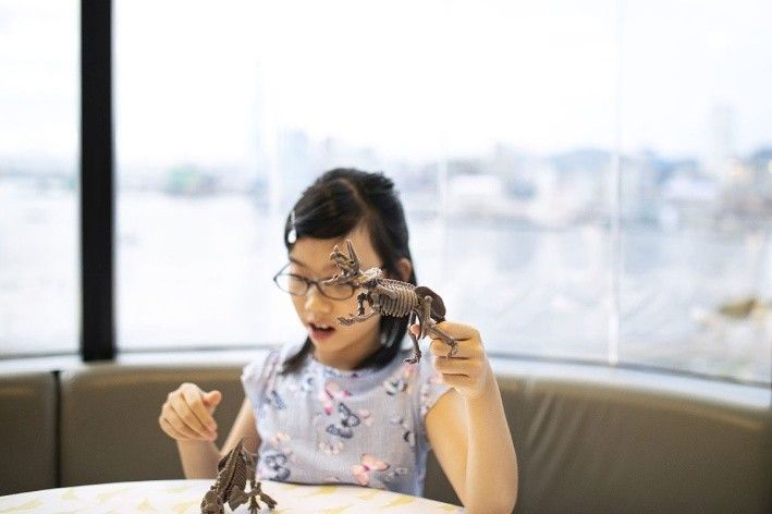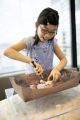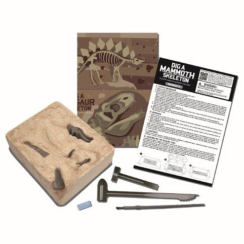Set pro vykopání a sestavení kostry dinosaura zalité do sádry. Obsahuje potřebné nástroje.