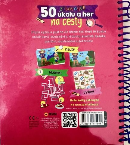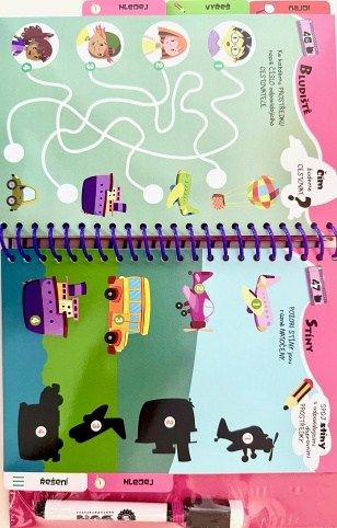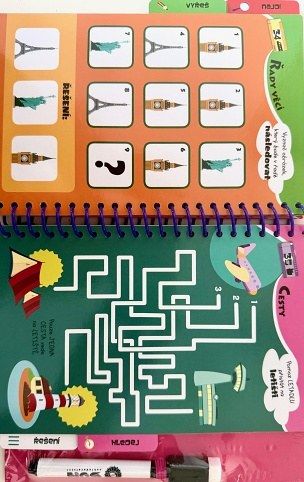 Knížka 50 zábavných úkolů a her Na cesty s mazacím perem pro děti 5–8 let. Hádanky, logické úlohy, postřeh a kreativní úkoly. Napiš odpověď, zkontroluj a smaž – knihu lze používat znovu a znovu! Ideální na doma i na cesty
