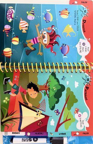 Knížka 50 zábavných úkolů a her Proti nudě s mazacím perem pro děti 5–8 let. Hádanky, logické úlohy, postřeh a kreativní úkoly. Napiš odpověď, zkontroluj a smaž – knihu lze používat znovu a znovu! Ideální na doma i na cesty.