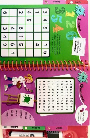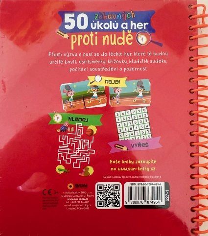 Knížka 50 zábavných úkolů a her Proti nudě s mazacím perem pro děti 5–8 let. Hádanky, logické úlohy, postřeh a kreativní úkoly. Napiš odpověď, zkontroluj a smaž – knihu lze používat znovu a znovu! Ideální na doma i na cesty.