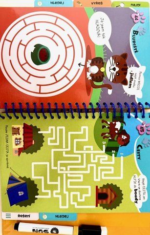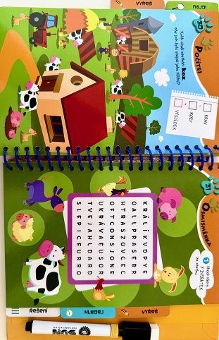 Knížka 50 zábavných úkolů a her Proti nudě s mazacím perem pro děti 5–8 let. Hádanky, logické úlohy, postřeh a kreativní úkoly. Napiš odpověď, zkontroluj a smaž – knihu lze používat znovu a znovu! Ideální na doma i na cesty.