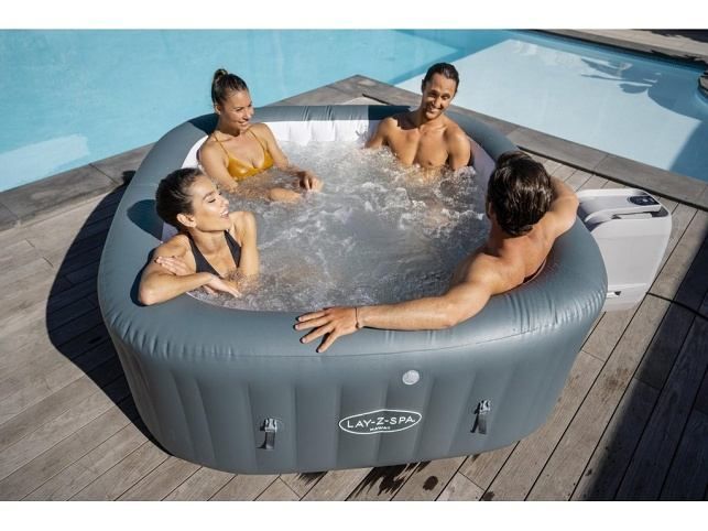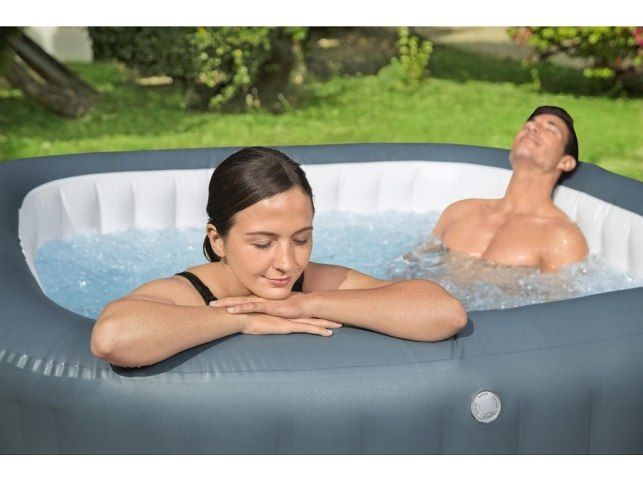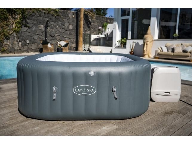 Vířivka Hawaii HydroJet Pro 180 cm x 180 cm x 71 cm. Po dlouhém dni není nic příjemnějšího, než se ponořit do teplé, bublající vody přímo na vašem vlastním pozemku. Technické údaje:Kapacita: 4-6 dospělíObjem vody (70%): 795 l (210 gal. )Velikost nafouknutého výrobku: 1,80m x 1,80m x 71 cm (71" x 71" x 28")Vnitřní rozměr: 1,30 m x 1,30 m (51” x 51”)Průtok filtračním čerpadlem: 1,325 l/h (350 gal. /h)Max. tepelný výkon: 40? (104?)Systém ohřívání: 1,5–2,0°C/h (3–4°F/h)Trysky: 8 ksHmotnost naplněného výrobku: 848 kg (1 869 LB)Hmotnost netto: 53 kg (117 LB)Maximální hloubka vody: 46 cm (18")Systém masáže pomocí hydrodynamických vodních trysek a vzduchových bublinek (8 vodních trysek a 140 bublinkových trysek)Dávkovač chemikálií ChemConnect™ zajišťuje stabilní koncentraci chloru ve vířivceAutomatický systém vyhřívání Freeze Shield™ brání zamrznutí vody a poškození vířivkyVyhřívání vířivky lze naprogramovat až 40 dní předem pro budoucí použitíDávkovač chemikálií ChemConnect™ zajišťuje stabilní koncentraci chloru ve vířivceEnergeticky úsporný časovačem řízený systém vyhříváníDigitální panel pro ovládání vířivky a čerpadla s integrovaným filtračním systémem zahrnuje držáky nápojů a je přístupný z vířivkyZesílený kryt s bezpečnostními uzamykacími sponamiObsah: 1 vířivka, 1 kryt bazénu, 1 čerpadlo vířivky, 1 dávkovač chemikálií ChemConnect™, vložka filtru (VI), sada pro opravy, systém HydroJet Pro™