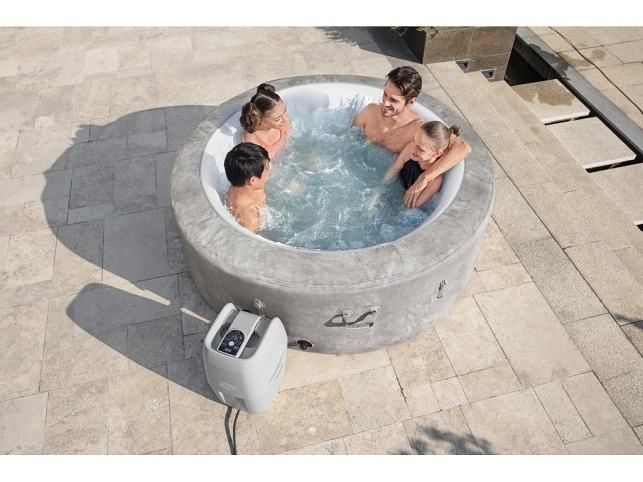 Lay-Z-Spa 180 cm x 66 cm Zurich AirjetRelaxační koupel po dlouhém pracovním dni ve vaší vlastní vířivce hned vedle domu je možná díky této dokonalé vířivce. Vířivka je skvělým řešením pro uklidňující masáž po náročném dni. Instalace je extrémně rychlá a snadná, stačí připojit čerpadlo a počkat, až se naplní vodou. Technické parametry:Kapacita: 2–4 dospělé osobyKapacita vody (80%): 669 litrů (177 gal)Velikost po nafouknutí: 1,80 m x 66 cm (71” x 26”)Vnitřní rozměr: ? 1,32 m (? 52” )Hmotnost naplněného výrobku: 713 kg (1 572 lb)Skutečný průtok vody: 1 325 l/h (350 gal/h)Systém ohřívání: 1,8-2,4 °C/h (3–4 °F/h)Max. tepelná kapacita: 40 °C (104 °F)Hmotnost netto: 36 kg (79 lb)Maximální hloubka vody: 52 cm (20")Uklidňující systém bublinkové masáže AirJet™ (120 trysek)Díky izolovanému krytu EnergySense™ dosahuje tato vířivka o 40 % vyšší energetické účinnostiStěny vyrobené z mimořádně pevného materiálu DuraPlus™ prošly zátěžovými testy a jsou velmi trvanlivéAutomatický systém vyhřívání Freeze Shield™ brání zamrznutí vody a poškození vířivkyVyhřívání vířivky lze naprogramovat až 40 dní předem pro budoucí použitíDávkovač chemikálií ChemConnect™ zajišťuje stabilní koncentraci chloru ve vířivceEnergeticky úsporný časovačem řízený systém vyhříváníZesílený kryt s bezpečnostními uzamykacími sponamiObsah: 1 plášť bazénu, 1 kryt bazénu, 1 čerpadlo vířivky, 1 dávkovač chemikálií ChemConnect™, vložka filtru (VI), sada pro opravy, systém AirJet™