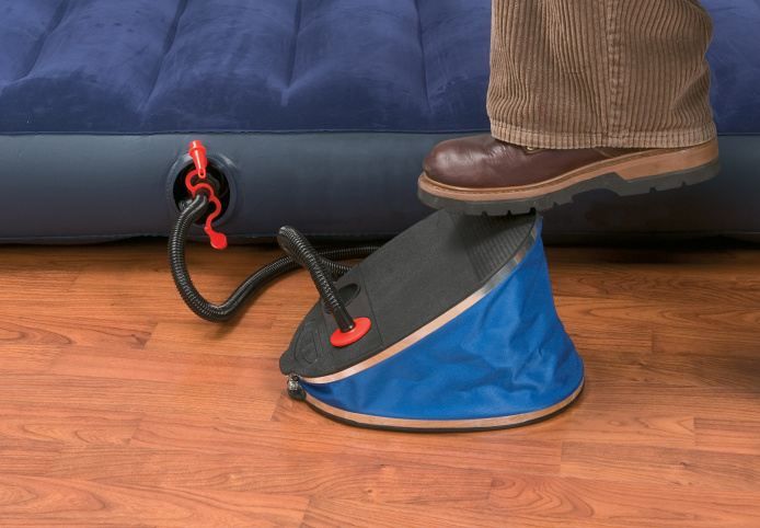 Pumpa nožní jednočinná pro nafukovaní matrací, člunů, míčů a jiných hraček.