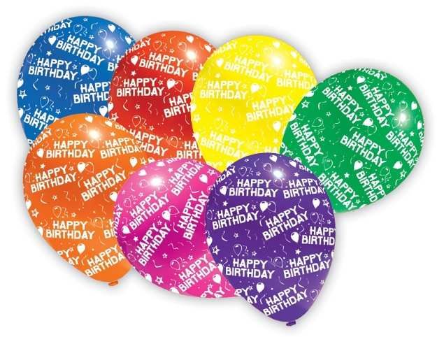 Barevné balónky s nápisy Happy Birthday na rozveselení narozeninových party.