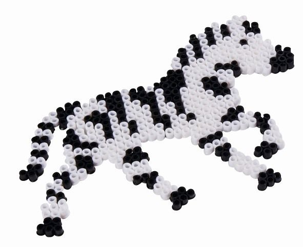 Zažehlovací sada korálků s motivy zvířátek, obsahuje 1300 korálků, 1 desku. 4 druhy motivů: slon, hroch, lev nebo zebra.
