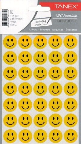 Barva: žlutá rozměr etikety: průměr 19 mm aršíků v sáčku: 2 kusů etiket v sáčku: 70 kusů