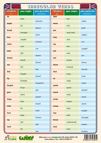 Obsah naučné tabule tvoří nepravidelné tvary 100 frekventovaných významových sloves v tvarech infinitiv, minulý čas, minulé příčestí. Pomocí této didaktické pomůcky si žáci snadněji osvojí nepravidelná slovesa, ale i pravopisné změny, ke kterým dochází. Trvalé vyvěšení naučné tabule vede k snadnějšímu zapamatování a osvojení daného gramatického učiva. Na opakované procvičování a přezkušování nepravidelných sloves slouží zadní strana tabule.