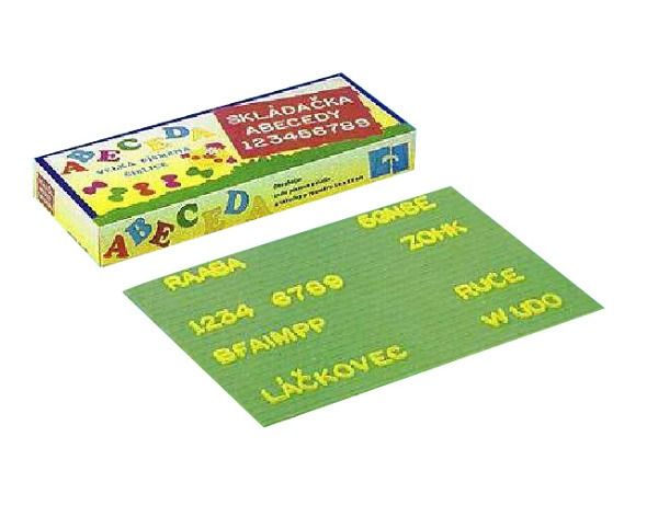 Zábavná skládačka ABC. Tato skládačka obsahuje všechny písmenka abecedy a podložky do kterých se písmenka dají vtlačit. Podložky jsou 4 a dají se spojit a vytvořit jednu větší.