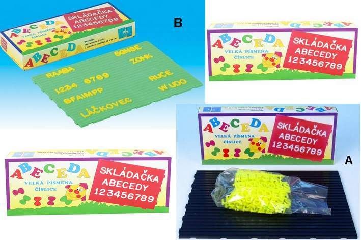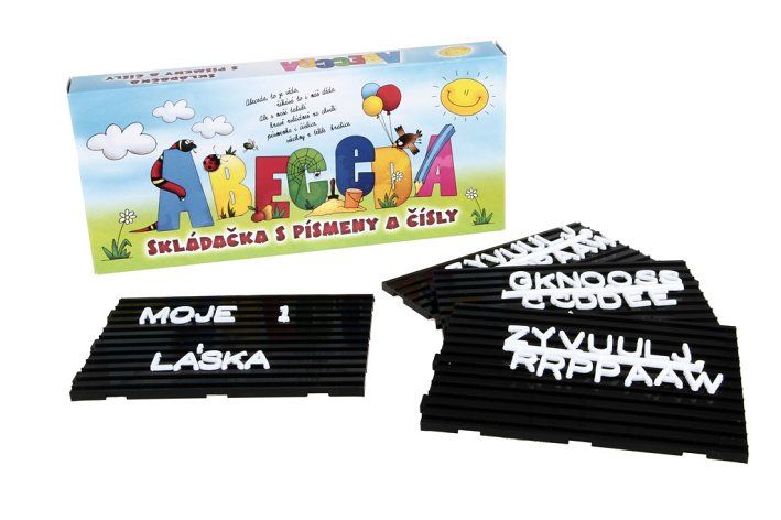 Obsahuje bílá písmenka a číslice, 4 x tabulky o rozměru 16 x 12 cm.