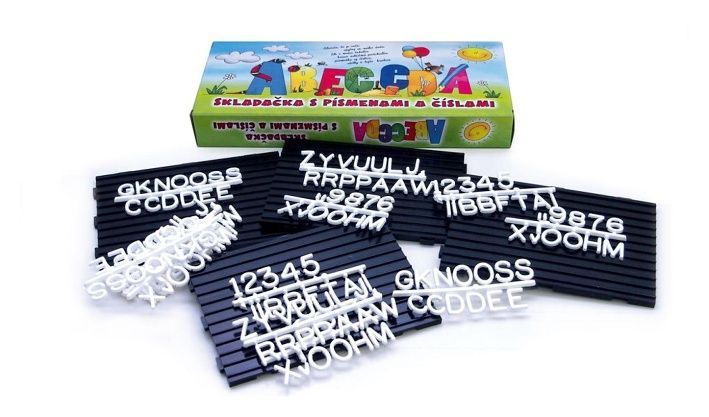 a podložky do kterých se písmenka dají vtlačit. Podložky jsou 4 a dají se spojit a vytvořit jednu větší. Děti si můžou tvořit různé slova, věty nebo nápisy a tím rozvíjet svoji slovní zásobu. Zábavná plastová edukativní pomůcka z plastu pro všechny malé děti.