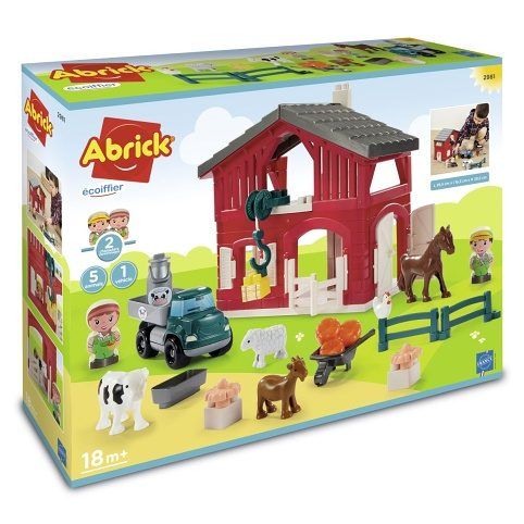 Farma z řady Abrick. Součástí 5 zvířátek, 2 figurky a 1 dopravní prostředek. Rozměry: 29,5 x 16,5 x 29,5 cm. Věk: 18M+