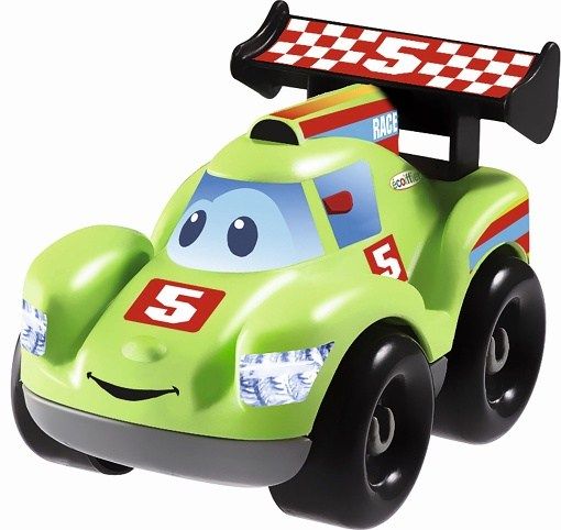 Tři modely závodních aut s vyměňovatelnou karosérií. Každý model závodního auta s legračním obličejem je bez ostrých hran a snadno se drží. Ideální pro malé dětské ručičky. Rozměry produktu (DxŠxV): 10 x 6,5 x 6,5 cm.