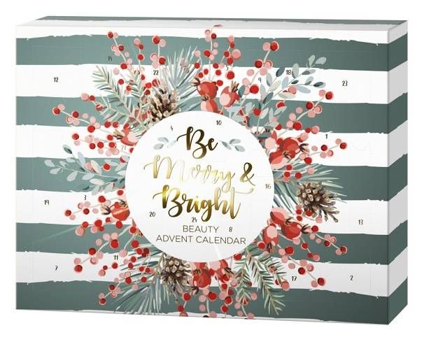 „Adventní kalendář Be Merry & Bright – nechte se v každém z 24 adventních dnů překvapit skvělými kosmetickými produkty a praktickými malými pomocníky. Barevně sladěná kosmetika – od očních stínů a laků na nehty až po lesk na rty a rtěnku – vytváří dokonalý vánoční vzhled. Klasický vánoční design se zlatými akcenty je skutečnou ozdobou. Obsah – 1× pilník na nehty, 1×ořezávátko, 1× spirálovou gumičku do vlasů, 2× separátor na lakování nehtů, 1× balzám na rty, 2× lesk na rty, 2× rtěnku, 1× tužku na rty, 1× aršík se samolepkami na nehty, 2× duo oční stíny, 1× oční linku, 1× pudr, 1× tvářenku, 1× náramek s přívěskem, 1× tužku na obočí, 1× řasenku, 2× lak na nehty, 1× mašle do vlasů. “