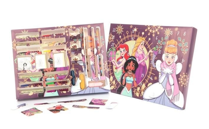 Adventní kalendář – obsahuje 6× pastelky, 6× fixy, 2× gumu, 2× aršík se samolepkami, 1× poznámkový bloček, 1× pravítko, 1× HB tužku, 1× propisku, 1× ořezávátko, 3× mini zvýrazňovač.