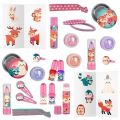 Adventní kalendář Kids Christmas – kosmetický pro děvčata. Obsahuje – 2× sponka do vlasů, 2× prstýnek, 2× gumičku na ruku nebo do vlasů, 2× aršík se samolepkami, 2× mašli do vlasů, 2× rtěnku, 2× balzám na rty, 4× lak na nehty, 4× stíny se třpytkami, 2× placku se špendlíkem.