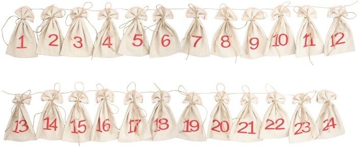 Adventní kalendář, lněné pytlíčky 8x13 cm, 24 ks