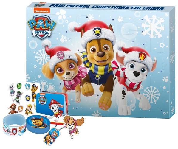 Adventní kalednář Tlapková patrola – slavnostní dárek pro děti. Každý den otevřete jedno okénko a až do Vánoc bude objevovat překvapení s motivem Tlapkové patroly. Vhodné pro holky i kluky. Obsahuje –1× náramek,2× gumičku do vlasů, 1× šňůrku, 3× klíčenku s přívěskem,2× placku se spínacím špendlíkem, 2× sada samolepek, 2× balzám na rty, 2× tetovací pero, 2× tetovací šablony, 1× šampón, 1× tělové mléko, 1× tekuté mýdlo, 1× magický růčník, 2× šumivé koule do kopele a 1× řetízek s přívěskem. Vyrobeno dle norem EU. Dermatologicky testováno.