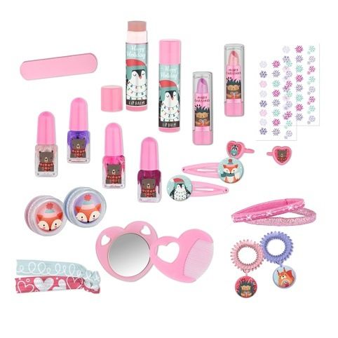 Adventní kalednář pro malé parádnice – obsahuje kosmetiku, jako lak nehty, lesk na rty, tyčinku na rty atp., součástí i různé vlasové doplňky.