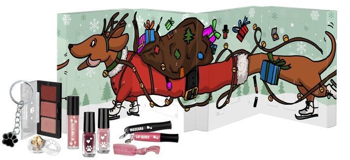 Adventní kosmetický kalednář trojdílný – slavnostní dárek pro ženy i teens. Každý den otevřete jedno okénko a až do Vánoc bude objevovat kosmetiku a doplňky do vlasů. Obsahuje 24 ks – 1× tužku na rty, 2× lak na nehty, 1× miniřasenku, 1× tužku na oči, 1× ořezávatko, 4 x separátor na nehty, 1× minilesk na rty, 2× balzán na rty, 1× dekorativní třpytky, 1× polepky na nehty, 1 krémové oční stíny, 2× triooční stíny, 1× klíčenku, 2× houbičkový aplikátor, 2× spirálovou gumičku do vlasů a 2× elastickou gumičku do vlasů. Vyrobeno dle norem EU. Dermatologicky testováno.