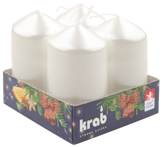 Sada adventní svíce, válec 4 kusy. rozměr: 40 x 80 mm, doba hoření svíčky cca 11 hodin Vyrobeno v ČR Vysoká kvalita - RAL zkušenosti, znalostí a dovednosti pracovníků společně s používanými materiály umožňují vyrábět svíčky nejvyšší kvality certifikované i celoevropským certifikátem kvality RAL. Pro výrobu se používají pouze prvotřídní rafinované parafíny nebo stearin, které neobsahují škodlivé látky. Stejný důraz na kvalitu jsou kladeny i u ostatních materiálů jako jsou knoty, kalíšky atd. Výrobce:KRAB BRNO, s.r.o.