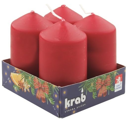 Sada adventní svíce, válec 4 kusy. rozměr: 40 x 80 mm, doba hoření svíčky cca 11 hodin Vyrobeno v ČR Vysoká kvalita - RAL zkušenosti, znalostí a dovednosti pracovníků společně s používanými materiály umožňují vyrábět svíčky nejvyšší kvality certifikované i celoevropským certifikátem kvality RAL. Pro výrobu se používají pouze prvotřídní rafinované parafíny nebo stearin, které neobsahují škodlivé látky. Stejný důraz na kvalitu jsou kladeny i u ostatních materiálů jako jsou knoty, kalíšky atd. Výrobce:KRAB BRNO, s.r.o.