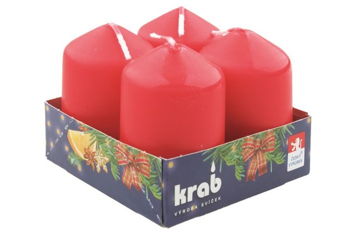 Adventní svíce válec červený 40x60mmn 4ks v sadě