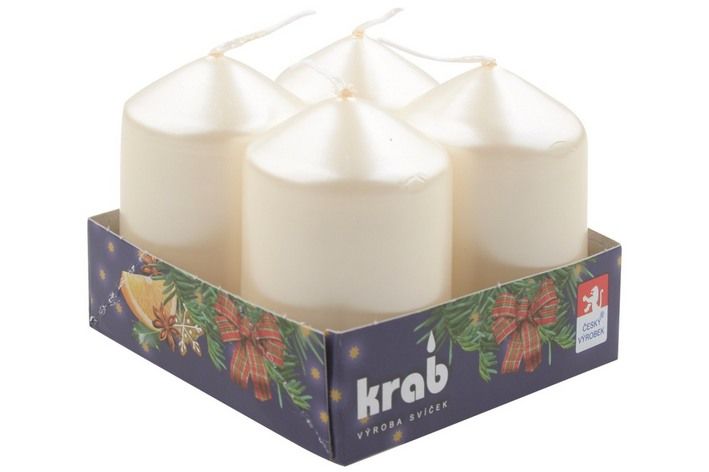 Čtyři válcové svíčky o průměru 4 cm a výšce 6 cm