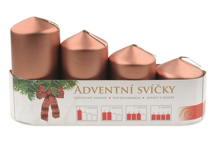 Adventní svíce válec měděná LAK postupka 50,75,90,105x60mmn 4ks v sadě