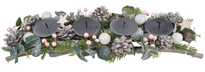 Adventní svícen podlouhlý s růžovými kuličkami 51 cm