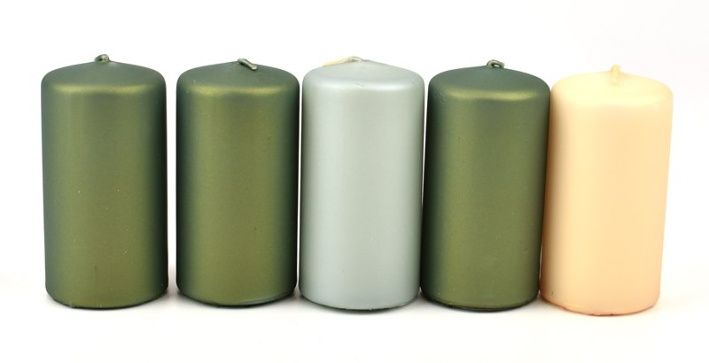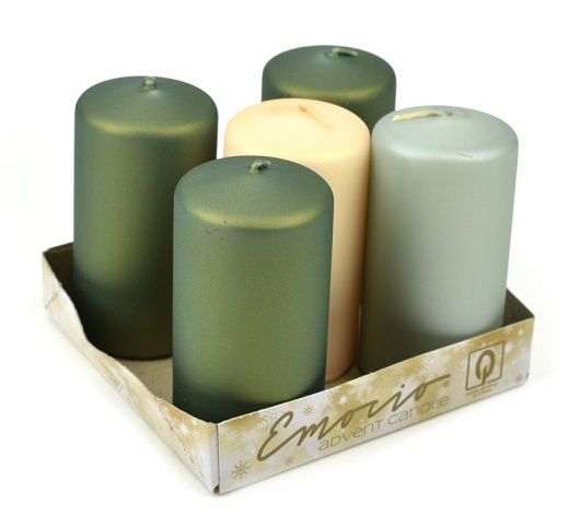Adventní svíčky Emocio, zelené metal mat, 4 x 7,5 cm, 4+1 ks