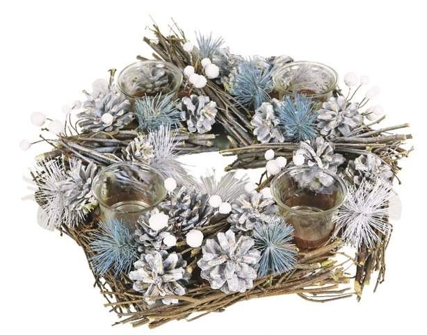 Adventní věnec z větviček se šiškami 41 cm