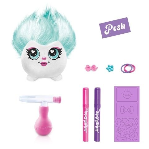 Airbrush kreativní sada Hair‚iffic s vlasatým plyšákem skvěle zabaví každého. Uvnitř balení najdete jednoho plyšáka s vlásky, airbrush nástroj, 2 fixy a 15 šablon, se kterými můžete plyšáka vyzdobit podle své fantazie. Když vás design omrzí, stačí plyšáka vyprat dle návodu a po uschnutí můžete znovu tvořit. Série obsahuje 3 druhy plyšáků – Pinkie, Pixie, Posh. Vhodné pro děti od 6ti let.