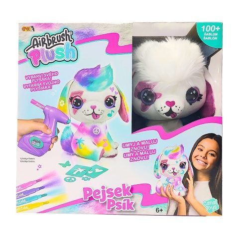 Navrhni a nabarvi si svého designového, barevného plyšáka a to pomocí airbrush pistole, která je napájená bateriemi. Na zdobení můžeš využít i různé šablony a barevné airbrush fixy. Součástí balení je: 1× plyšák, šablony, 4 barevné náplně, airbrush, návod. Výrobek je vhodné pro děti od 6 let. Výrobek vyžaduje 2× AA baterie (nejsou součástí balení).