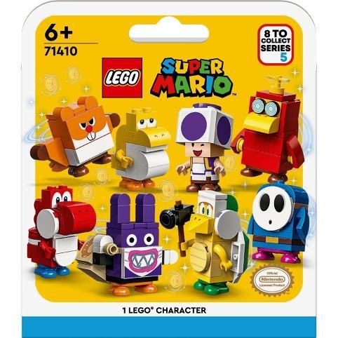 S 5. sérií sběratelských akčních kostek (71410) mohou děti posunout svá dobrodružství LEGO® Super Mario™ zase o kousek dál. Každý balíček obsahuje náhodnou sestavitelnou postavičku s akčním prvkem. Nechybí ani menší model, díky kterému si lze figurku vystavit nebo ji zasadit do herních úrovní. Série obsahuje celkem 8 sběratelských postav LEGO Super Mario. Tuto originální partičku tvoří Nabbit, fialový Toad, Hammer Bro, Waddlewing, Toady, malý Yoshi, červený Yoshi a modrý Shy Guy. Všechny postavy je možné zapojit do hraní se startovacím setem (71360, 71387 nebo 71403), který je vyžadován pro plnohodnotný interaktivní herní zážitek.