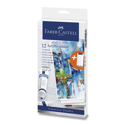 Vysoce pigmentované světlostálé akrylové barvy Faber-Castell mají intenzivní barvy a vzájemně mísitelné odstíny. Po zaschnutí jsou barvy voděodolné. Obsah tuby 12 x 20 ml